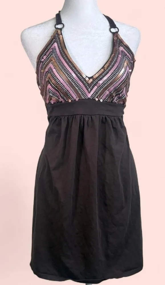Vintage Y2K Victoria's Secret Women's Beaded Sequin Halter Dress Brown Mini Good condition, no size... Show more