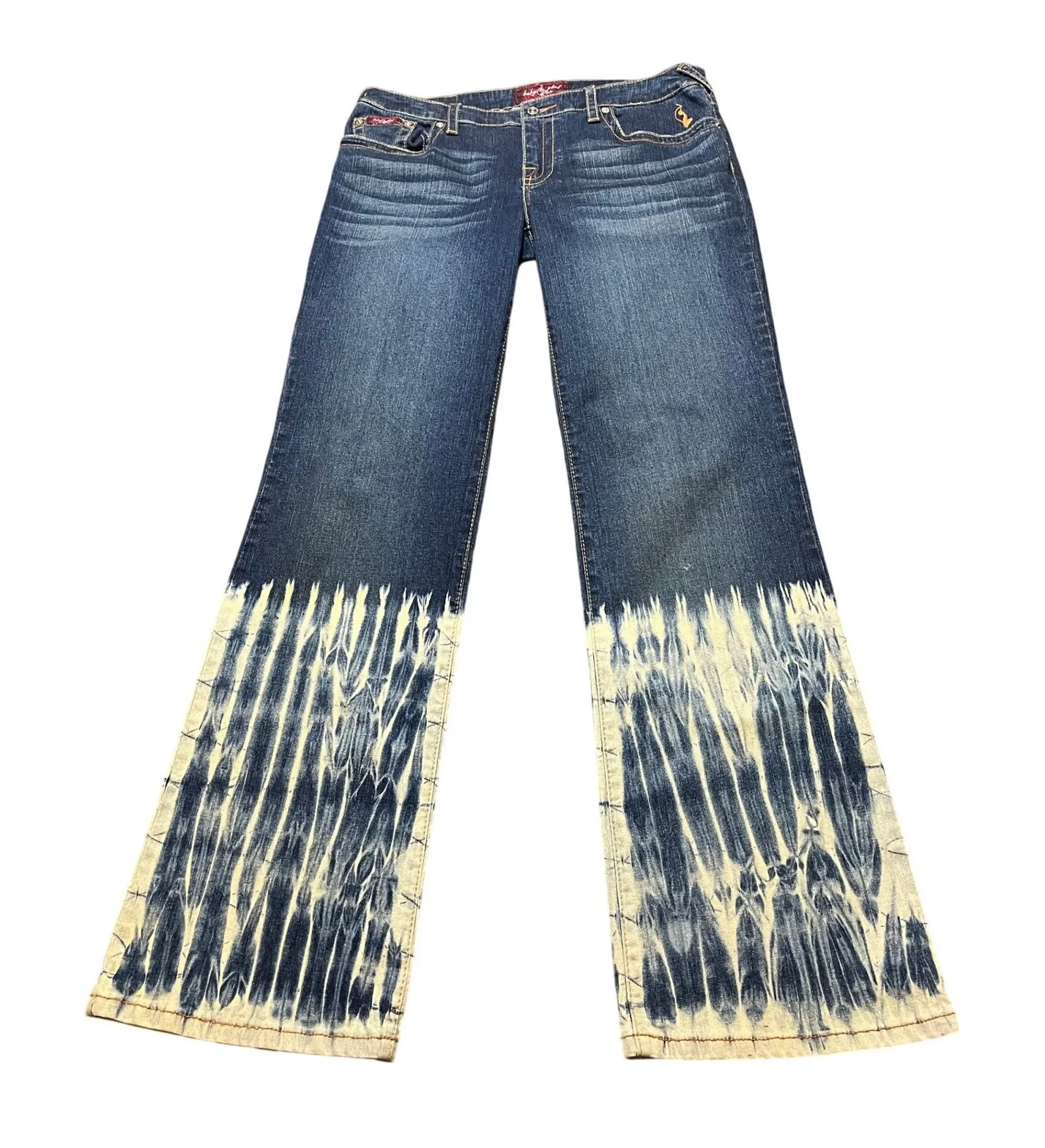 Vintage Y2K Women's Baby Phat Acid Wash Bleach Bottom Cuff Jeans Wide Leg 13 Size 34 - $54 - From Sophie