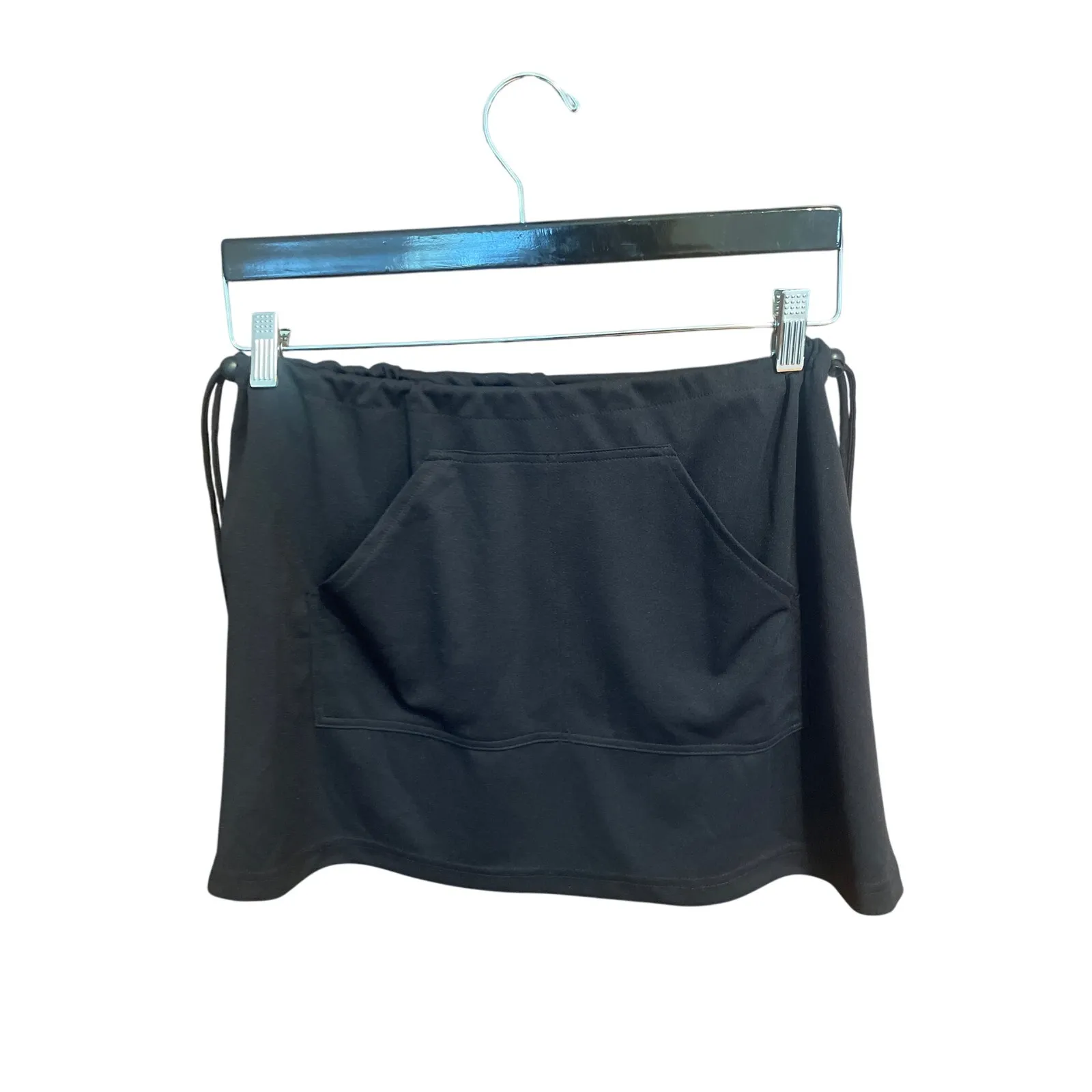 Vintage 90s/Y2K black mini skirt Drawstring waist with toggles on both sides Kangaroo pocket Slinky, stretch fabric Size large / L Measurements in photos (waist adjusts to fit with cord) tags: casual, slouchy, skater, gorp, rave, raver, tech, cyber, juniors 11122