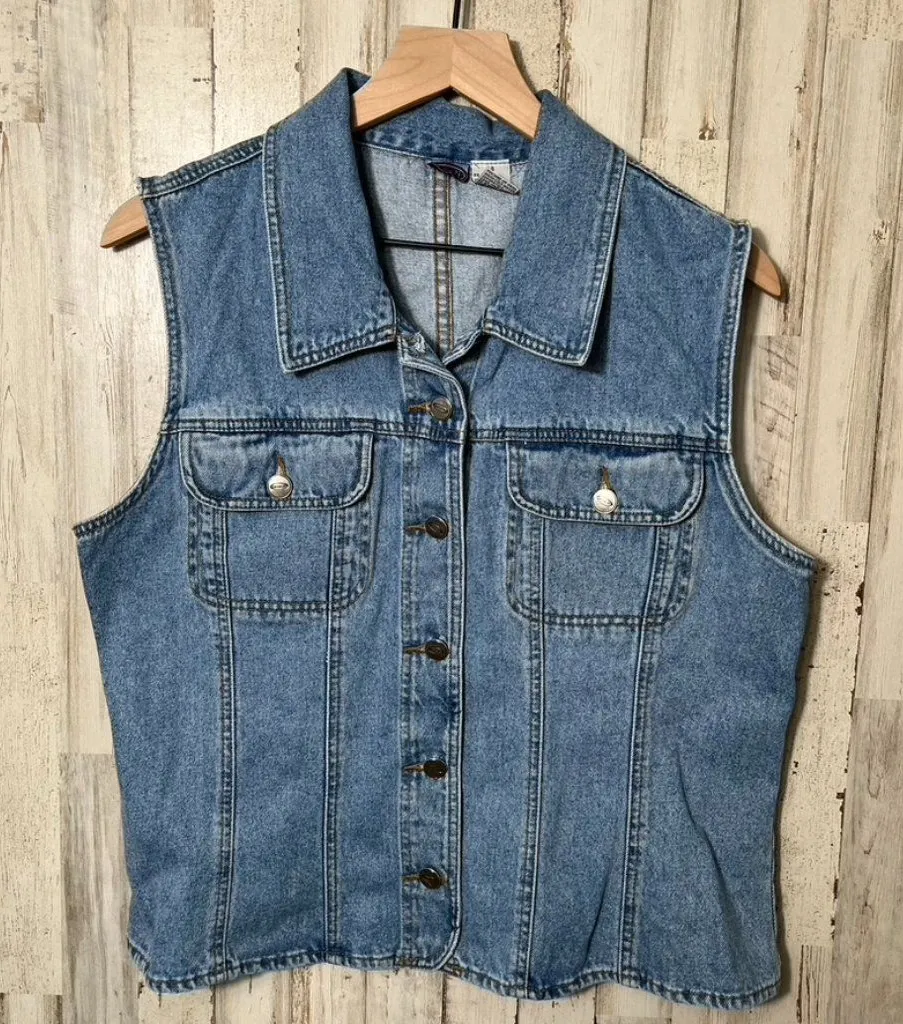 great preowned condition. tagged size 14 fits like a large. 100% cotton. made in hong kong. button chest pockets. pit to pit: 20.5" length: 22.5" waist: 19.5" -all flaws are pictured and/or described however please expect normal secondhand wear on all preowned items. -ask me any questions! 1567