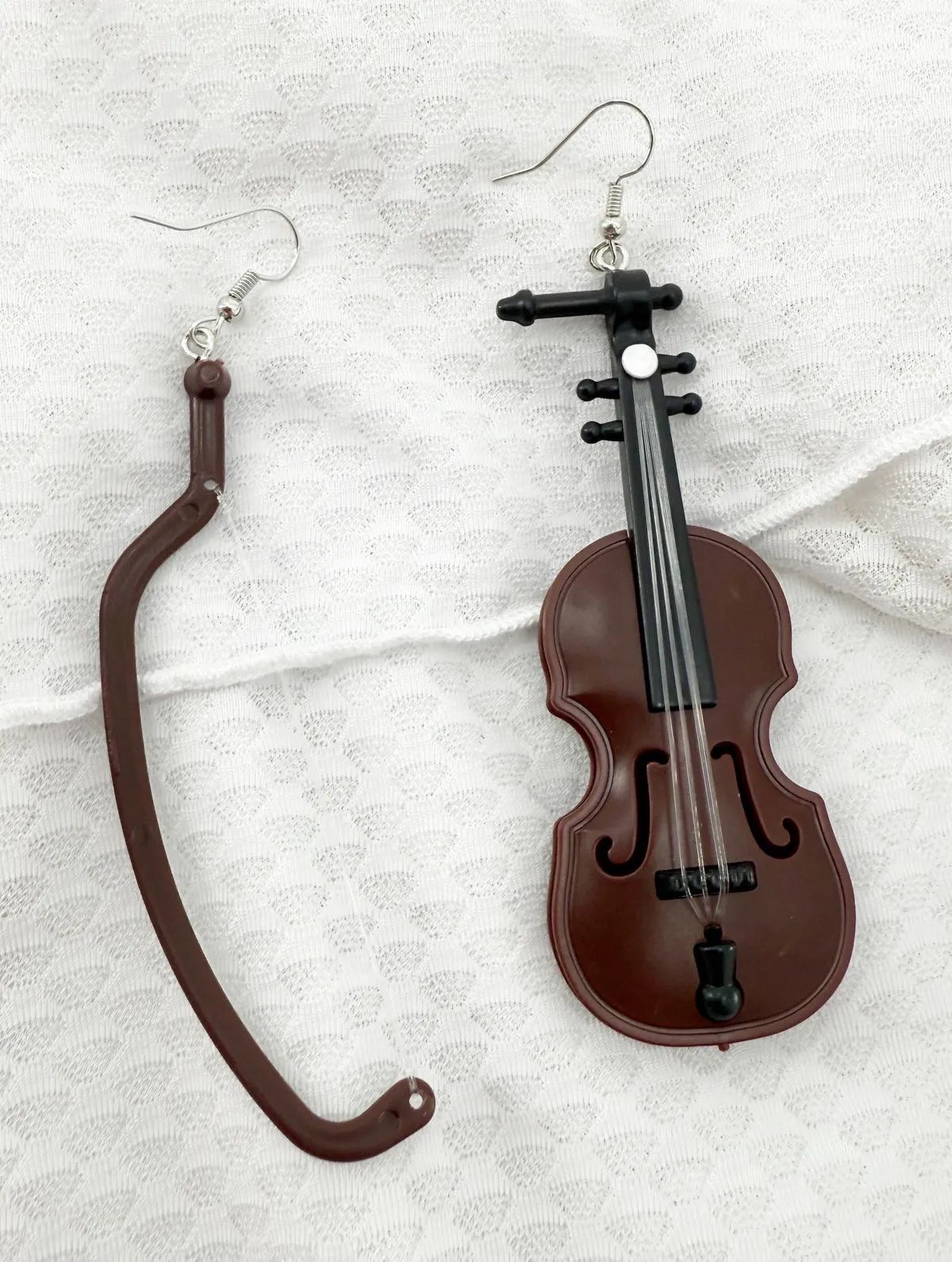 Violin Earrings, Musical Instrument Violinist, Meme, Musician, Quirky Statement Brown - $14 - From Rachel