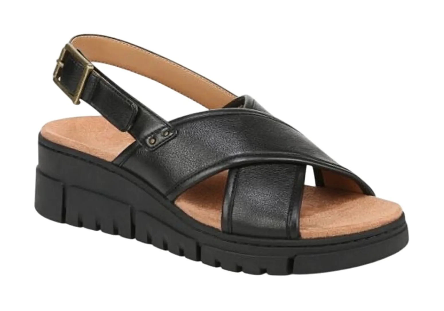 VIONIC Uptown Sonoma Slingback Wedge Sandal in Black Leather Size US Womens 12 Wide / Eur 43 New in... Show more