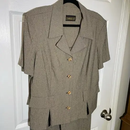 The Virgo II Pant Suit Set in Brown Heathered Rayon blend is a stylish and versatile outfit for women. This vintage-inspired set includes a coordinating pant and jacket, perfect for a sophisticated and comfortable look. The rich multicolors add a touch of elegance to the ensemble, making it a great choice for various occasions. Made from high-quality rayon blend, this suit set is sure to be a timeless addition to any woman's wardrobe. Features: lightweight, button closure for the top, zip closure on bottoms, soft, wide leg pants with high waist. Size is approximate and based on measurements. Material tag is faded. I could read 50% rayon, but couldn’t read the rest. Very nice feel & quality. •Condition: Good vintage condition. Some wash wear. No holes, stains, or tears. •Shipped with care! Will generally go out same or next business day. •Please read the description and review all photos of the item to ensure the condition/ fit meets your expectations. THANK YOU FOR VISITING MY CLOSET!