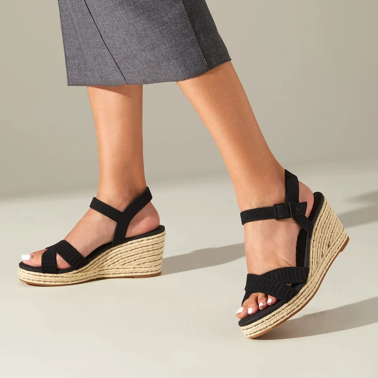 Vivaia Sally Pro Wedge Sandals Old Money Casual Knit Platform Comfort Black EU 39.5 US 8.5 Retail $1... Show more