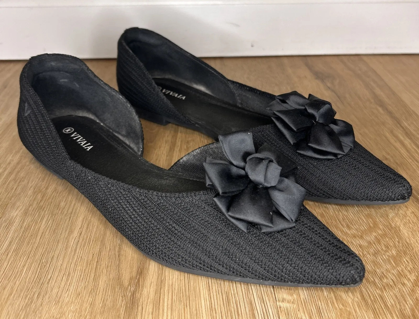 VIVAIA Women’s 10 EU 41 Flats D'Orsay Pointed-Toe Black Knit Bow Dressy Comfort - $56 - From Katelyn