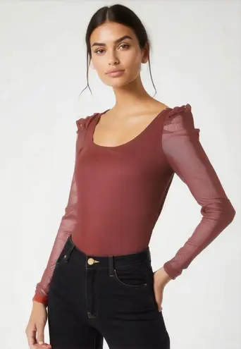 Vivienne Tam Petite Red Mesh Sheer Long Sleeve Top Size PM Ruffle Shoulder Sheer arms, body is lined... Show more