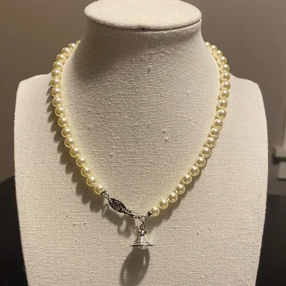 Vivienne Westwood faux pearl and Saturn orb pendant choker, new. Silver - $98 New With Tags - From Chris