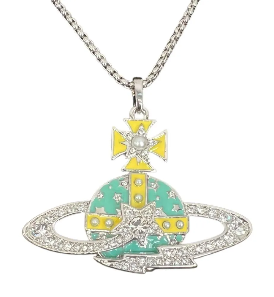 NWOT Vivienne Westwood Large Shooting Star Orb Necklace 17” with dust bag, cloth and booklet Brand: Vivienne Westwood Type: Necklace Style: Chain Chain Length: 17” Pendant size: 2” x 2.25” Closure: Lobster Color: Multicolor, Silver Green Yellow Main stone: White/colorless Includes: dust bag, cleaning cloth, and booklet Please review all photos as they are part of the description. Measurements are my best approximation, with garment laying on a flat surface. Drop questions below in the comments. 💕