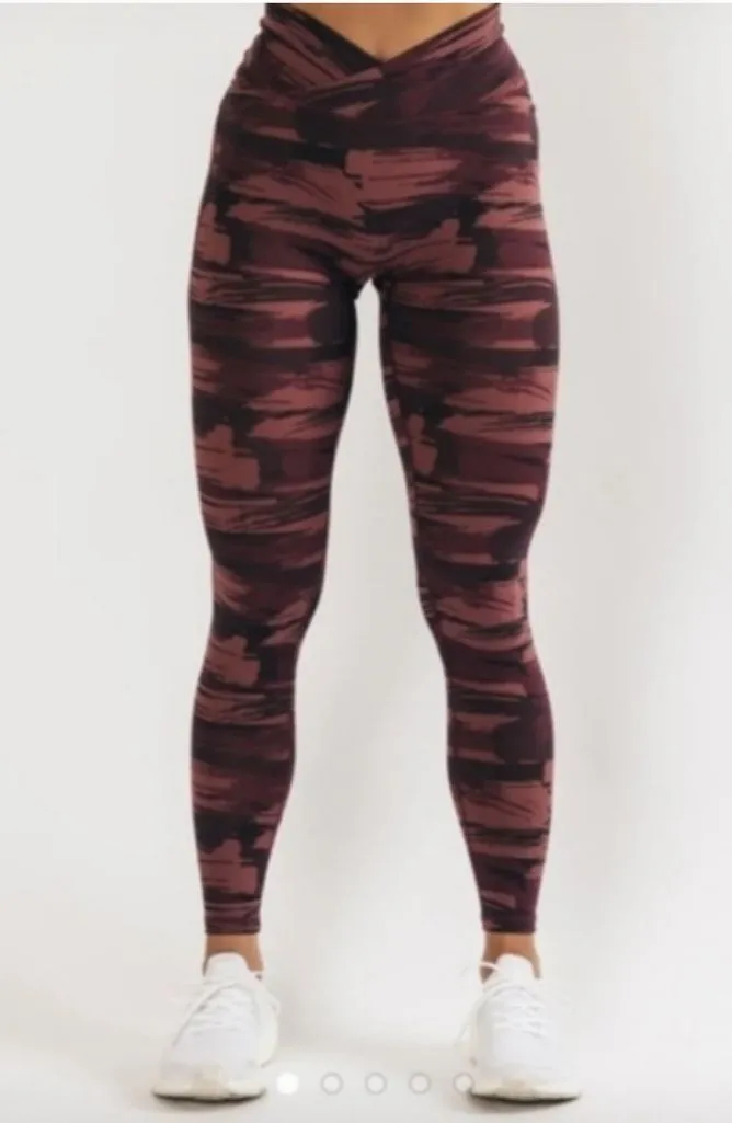 High rise Crossover waistband Abstract print Full length Pull-on style Stretch Slim fit Athletic fit... Show more