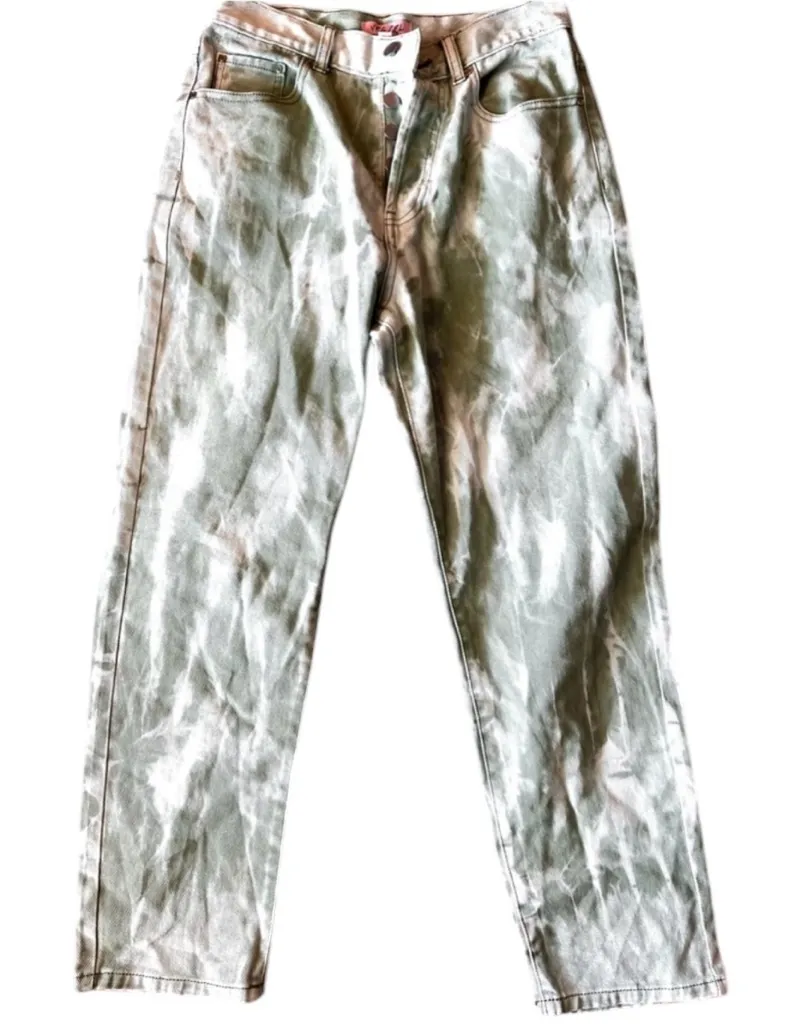 Upgrade your wardrobe with these stylish Verge Girl tie-dye jeans in green and white. The relaxed fit and mom style make them perfect for any casual occasion. These jeans are made of high-quality cotton material, ensuring both comfort and durability. The tie-dye effect gives the jeans a unique and trendy look, while the green color adds a pop of color to any outfit. These jeans are perfect for women who are looking for a versatile addition to their wardrobe. Get ready to turn heads with these fashionable jeans!