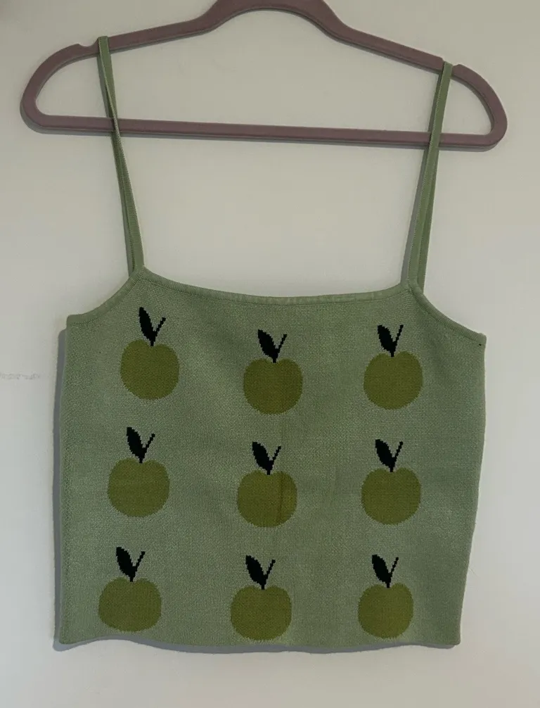 Vrg Grl Green Apple Sleeveless Square-neck Tank Top Shirt Size 14 Australian on tag (per their size chart this is a US 10) Measurements (approximate,) taken flat: Bust (from pit to pit:) 16” Length: 18” Retro style. Cropped fit. This is in excellent preowned condition. No flaws to note. Items shipped same or next day. Weekend orders shipped Monday.