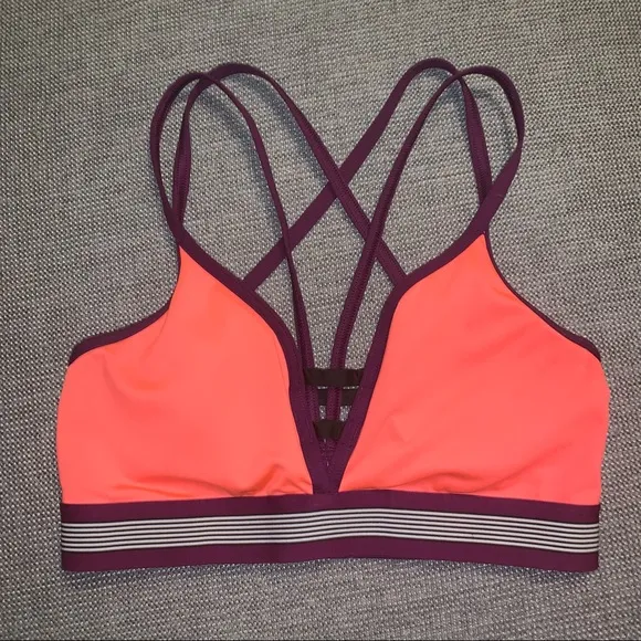 VSX Victoria's Secret criss cross Sports bra, colorblock, salmon pink and dark maroon, straps cross... Show more