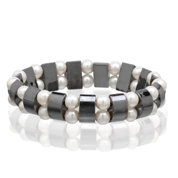 Pearl Magnetic Hematite Bracelet, Beaded Gemstone Stretchable Bracelet - $10 - From Shahi