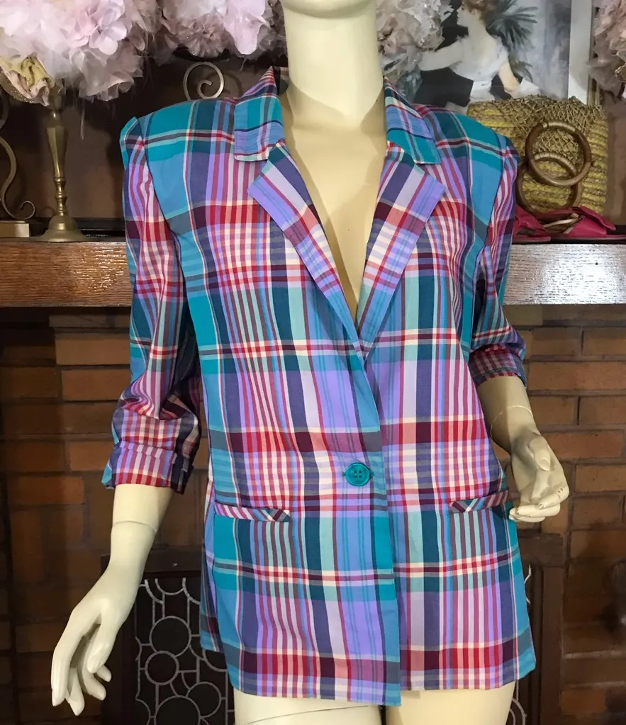 This listing is priced for the blazer pictured only. Vintage 1980's Petite Haberdashery -multi color -cotton blend -single button closure -light weight -unlined -cropped sleeve -shoulder pads Blazer is marked size 10P --please use measurements provided in photos for fit determination; Size tags alone, are not a reliable source. Item is free of stains or holes. Preowned items (especially vintage pieces) are subject to any minor imperfections which come with an article of clothing that has been washed and worn; these signs of wear generally include light pilling or fuzzing, loose threading or wrinkling. Some listings may not include these issues, but as a general disclaimer, please be aware it is possible. Unless indicated, there is no major damage to a piece. To mitigate the cost of the items and avoid any issues customers may have with allergies, we leave desired cleaning to the new owners.