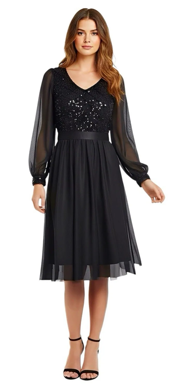 Vtg 60s 70s Mary-Martin Florida Dress knee length Black Sequin Long Sleeve Glam Party Disco, Holiday... Show more