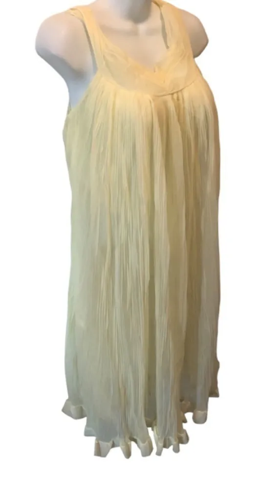 Vintage Evette Pleated Babydoll Nightie Sleeveless Pastel Yellow Lined Sz. Small Rushed Shoulder an... Show more