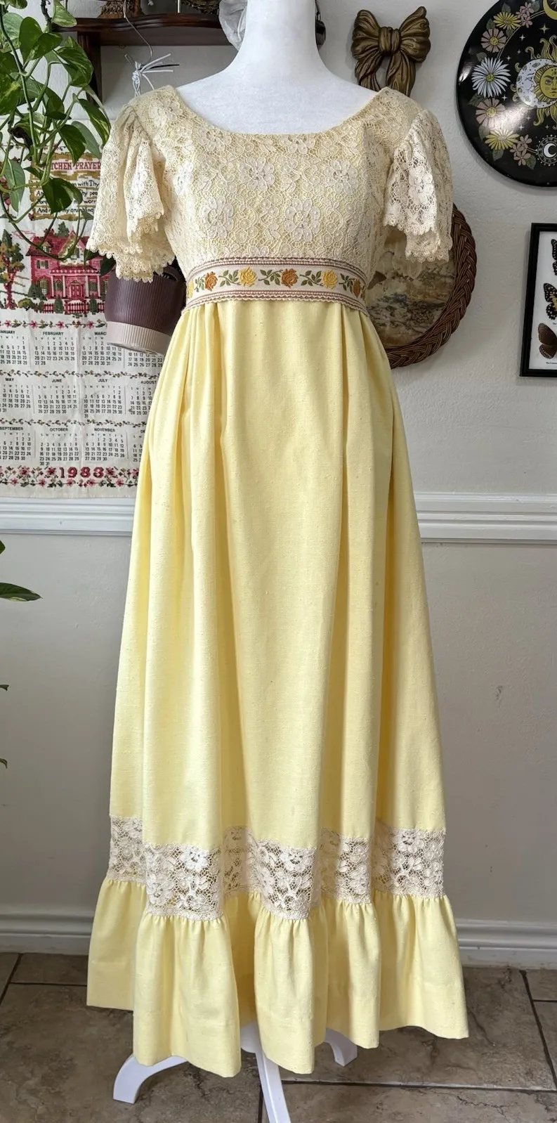 Good condition, zipper works great. A few spots I have included in pictures. They are towards to bottom of the dress. Please measurements carefully dress does not stretch much.