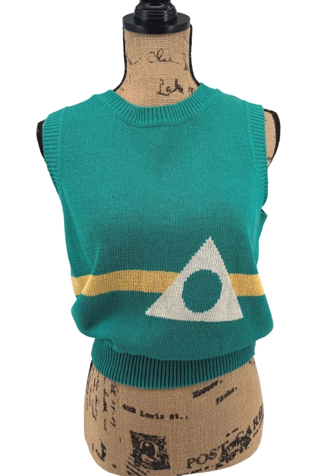 Overall good pre owned, pre loved, pre worn condition💕 ‼️PLEASE SEE LAST 2 PHOTOS FOR THE FLAW‼️very faint light stain No holes or rips A classic green knit sweater vest with a striking geometric design. This sleeveless top features a bold horizontal stripe in yellow and a white triangle with a circular cutout, all rendered in a comfortable knit. Perfect for layering over blouses or t-shirts for a touch of retro charm, this vest is ideal for casual outings, a day at the office, or a vintage-inspired look. Measurements: lying flat • Length: 21" • Pit to Pit: 18" Style: Vest Department: Women Material: Ramie, Cotton Neckline: Crew Neck Theme: Retro, Aztec, Geometric, 80s Sleeve Length: Sleeveless Type: Sweater Features: Graphic Print, Lightweight Pattern: Geometric Fabric Type: Knit Knit Style: Tight-Knit Season: Spring, Summer, Fall Fit: Classic Occasion: Casual Garment Care: Hand Wash Only Keywords: Pony Hair, sweater vest, geometric print, sleeveless knit, retro style, layering piece, vintage fashion, casual top, office wear, preppy, academia, fall fashion From A Smoke Free Pet Friendly Home All Questions & Offers Are Welcome 📦Always Ships Same Or Next Business Day