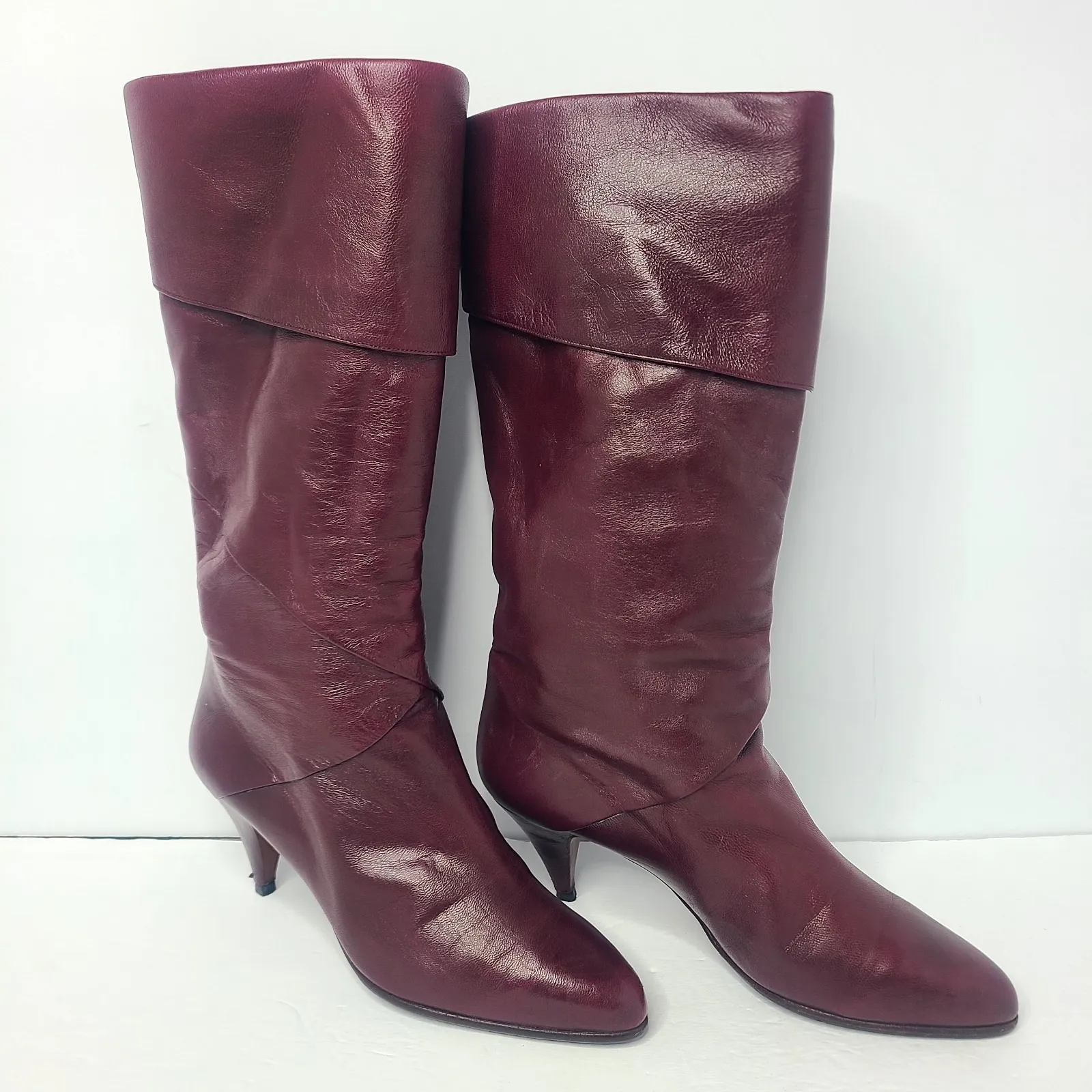 Vtg 80s Joseph Womens Foldover Made In Spain Burgandy Soft Leather Boots Size 8 Purple - $65 - From Persa