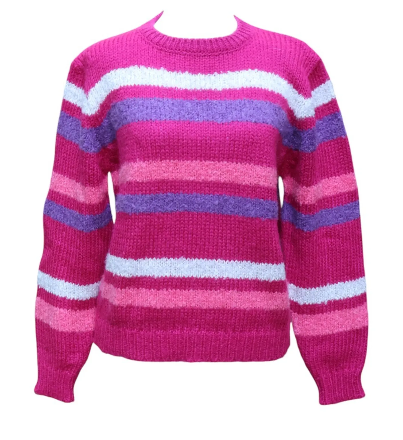Vtg 80s Penguin Isle Striped Sweater Cozy Fuzzy Maximalist Dopamine Wool Size L Vintage 1980s Penguin Isle sweater with bold horizontal stripes in pink, purple, white, and magenta. Features a soft fuzzy knit, crew neckline, and ribbed cuffs and hem. Made in Korea from a cozy acrylic-wool blend for warmth and comfort. Style Aesthetics: 80s Retro – Whimsical – Statement Knit – Preppy – Y2K Revival - maximalist - colorful - dopamine - warm and cozy - colorblock Features: Pink/purple/white stripe – Acrylic/wool/nylon blend – Pullover – Ribbed cuffs and hem – Crew neckline – Medium weight knit Condition: Excellent vintage condition with light normal wear (see photos). Measurements in photos – please review measurements prior to purchase to ensure fit. Please note: Color may vary slightly due to lighting and screen differences. Offers welcome!
