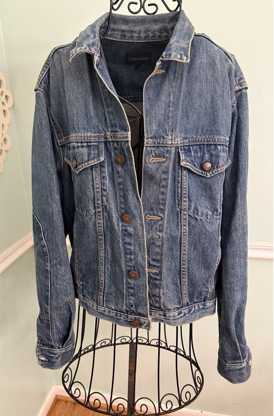 Vtg 90’s Calvin Klein Denim Jean Jacket Blue hippie SZ M Peace Daisy Painted Size M - $40 - From NiCole