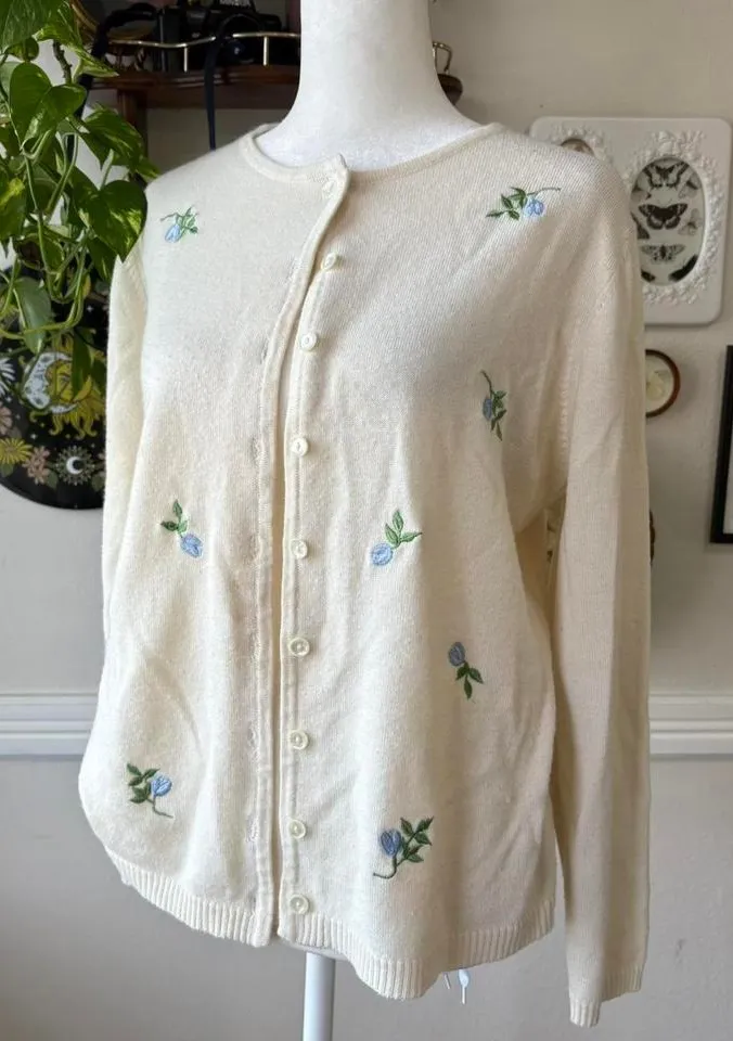 Vtg 90s Claudia Barnes Size M Floral Embroidery Grandma Cardigan Sweater Fairy Size M - $19 - From Kelly