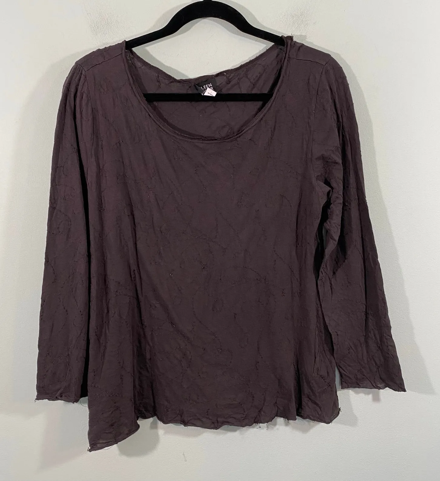 Vtg 90's Eileen Fisher Brown Allover Embroidered Lightweight Q-sleeve Top - Size S - Good pre-owned... Show more
