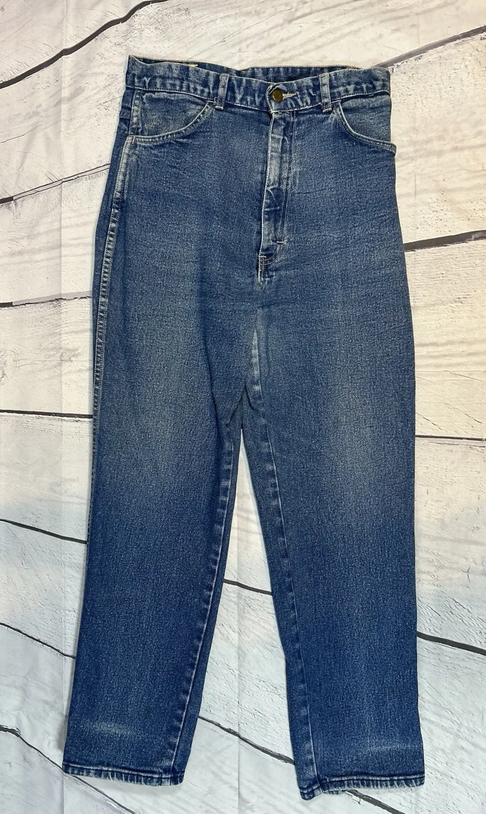 Vintage 1990s Glory Days denim jeans in a classic high-rise tapered leg silhouette. Label size 11/12. Medium wash with a flattering structured fit and retro hippie vibe. Features front and back pockets, zip fly with button closure, and belt loops. This pair shows light wear consistent with age and has a flaw between the legs—see photos for detail. Note: Vintage sizing runs smaller than modern sizing. Please check measurements for best fit. Approximately: Waist: 14” Rise: 12” Inseam: 27” Length: 39” Bottom leg opening: 7” vintage jeans, 90s denim, high rise jeans, tapered leg, Glory Days, retro hippie pants, mom jeans, VTG 11/12 denim, made in USA style