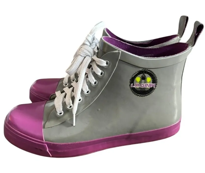 VTG 90's LA Gear Sneaker Rain Boots Sz 7 Lace Up Galoshes Gray Purple - $45 - From Jessica