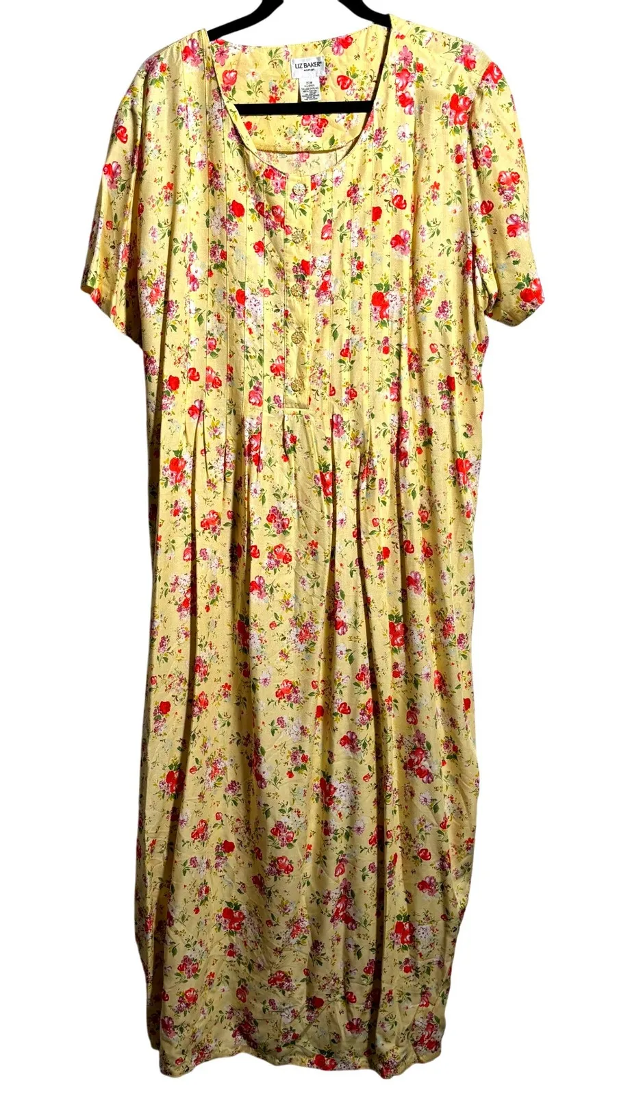 Measurements: • Chest (across): 24.5 inches • Length: 54 inches Keywords: Liz Baker, Woman, Plus Size, Maxi Dress, Floral Dress, Yellow Dress, Rayon Dress, Casual Dress, Short Sleeve Dress, Womens Dress, 20W, Spring Dress, Summer Dress, Lightweight Dress bohemian cottage core prairie retro vintage womens size 20 dress flowers coquette girl romantic waist tie pleated buttons long shirt dress breathable Please see photos for details. Offers welcome!