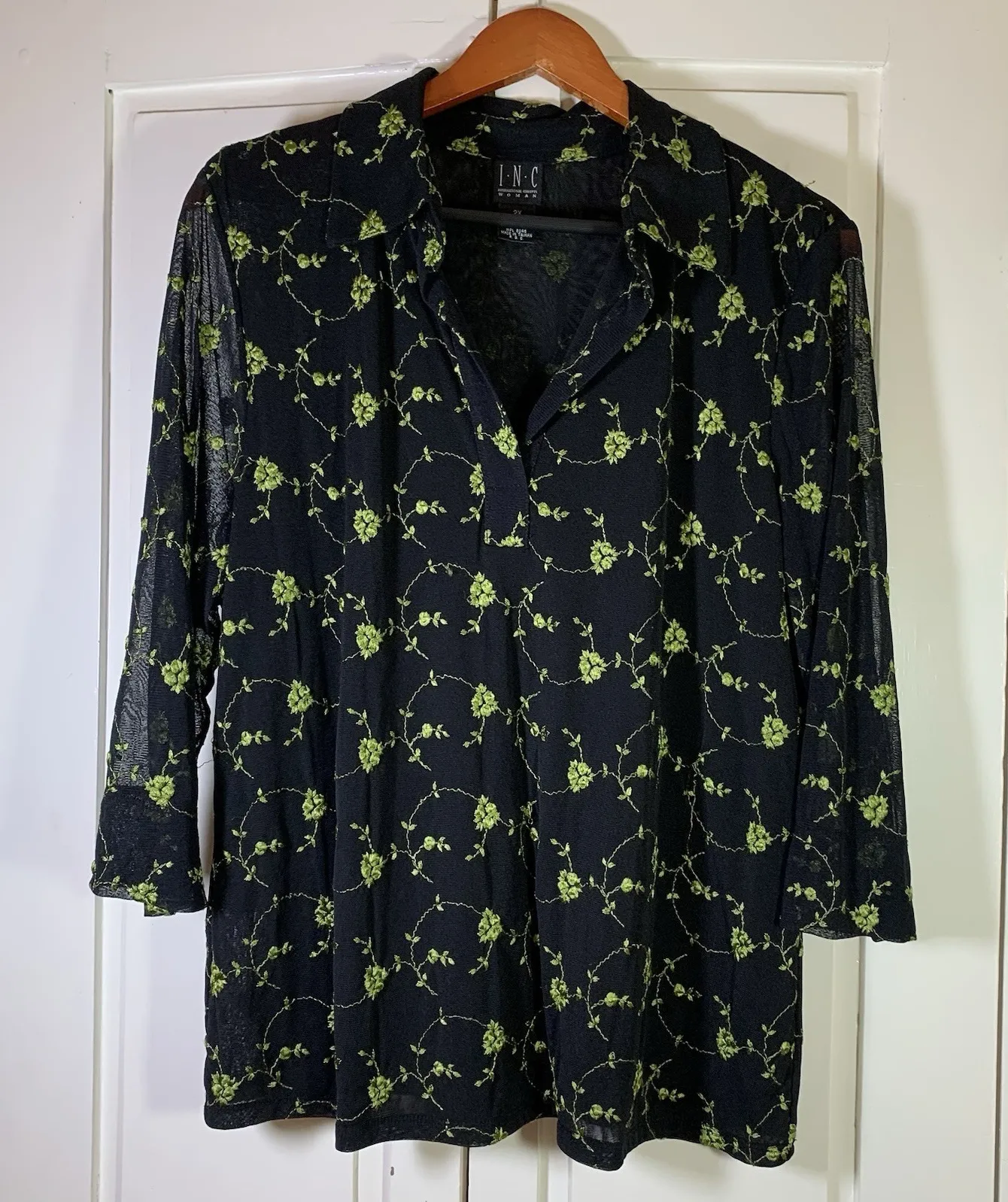 Vtg‎ 90s Whimsigoth Fairy Grunge Top Mesh Goblin Embroidered Floral Semi Sheer Black Size XXL - $21 - From Julie