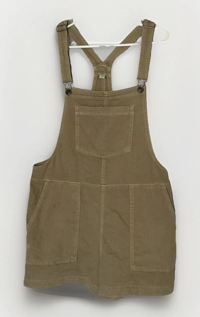 Aerie women's short overalls / shortalls in a tan neutral color with a distressed, boho festival vib... Show more