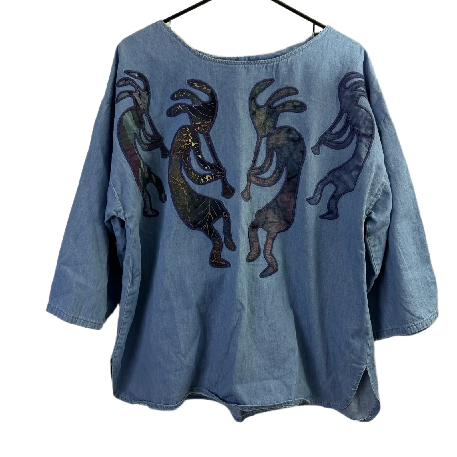 This listing is for an Alfredo's Wife Denim Kokopelli Shirt. Cotton. Boxy relaxed fit. Condition, G... Show more