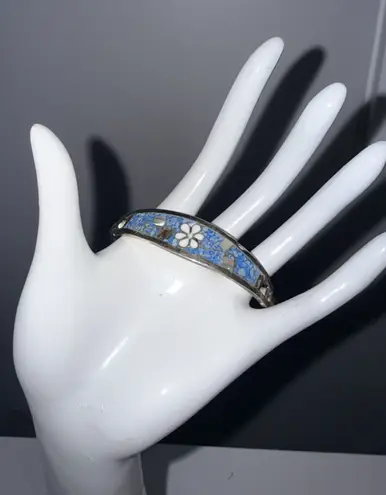 VTG Alpaca Mexico Sterling Silver Bangle Bracelet Abalone Blue Flower Inlay 7" - $30 - From ivette