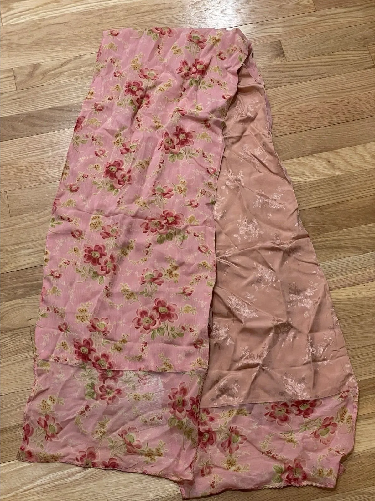 Vtg April Cornell Scarf Floral Pink Satin Jacquard Long 80" x 14" Cottage New - $19 New With Tags - From Poppy