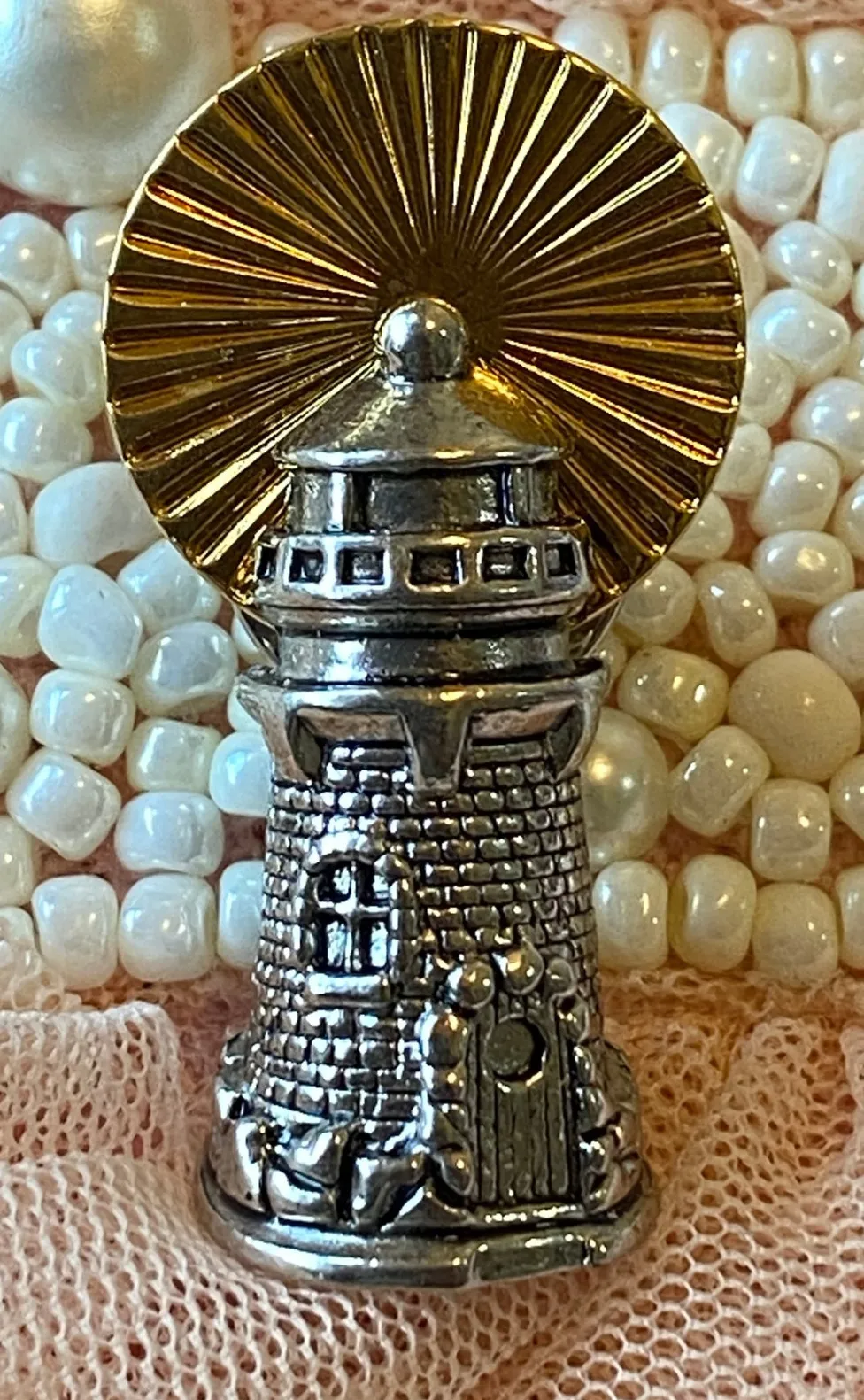 Preloved in excellent condition Please see all photos for close up details and measurement. Type: Pin, Brooch Theme: Beach, Buildings & Monuments, Signs & Symbols, Vacation Main Stone Color: Gold Metal: Tibetan Silver Shape: Asymmetrical Secondary Stone: No Stone Features: Engraved Era: Undated Unit Type: Unit Keywords: lighthouse, nautical, coastal, maritime, beach, seaside, travel, charm, collector, gift, unique, pin, brooch, accessory, vintage
