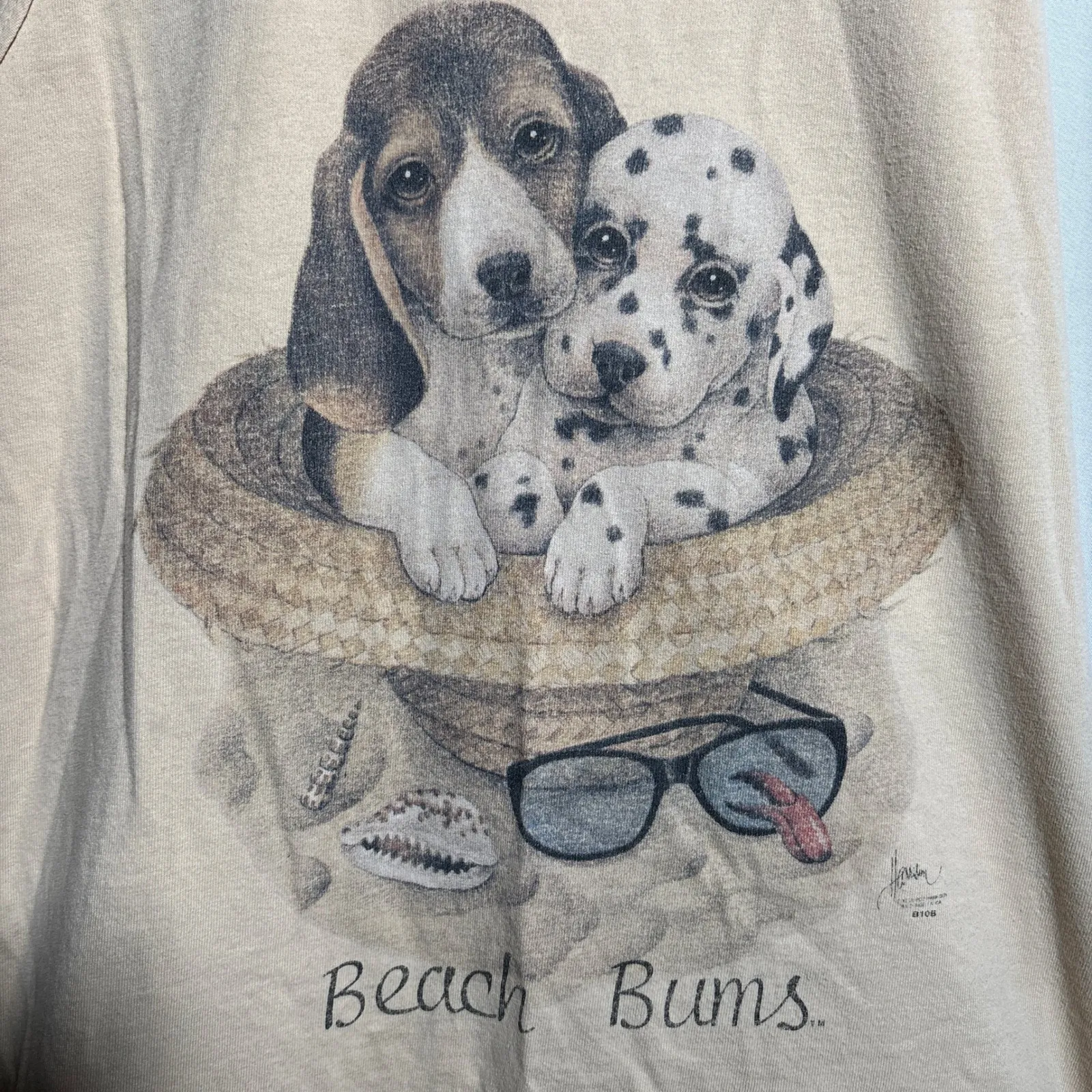 VTG Beach Bums Puppy Dogs Graphic Tank Top Coastal Grandma Core Retro Cotton L Keywords: vintage, a... Show more