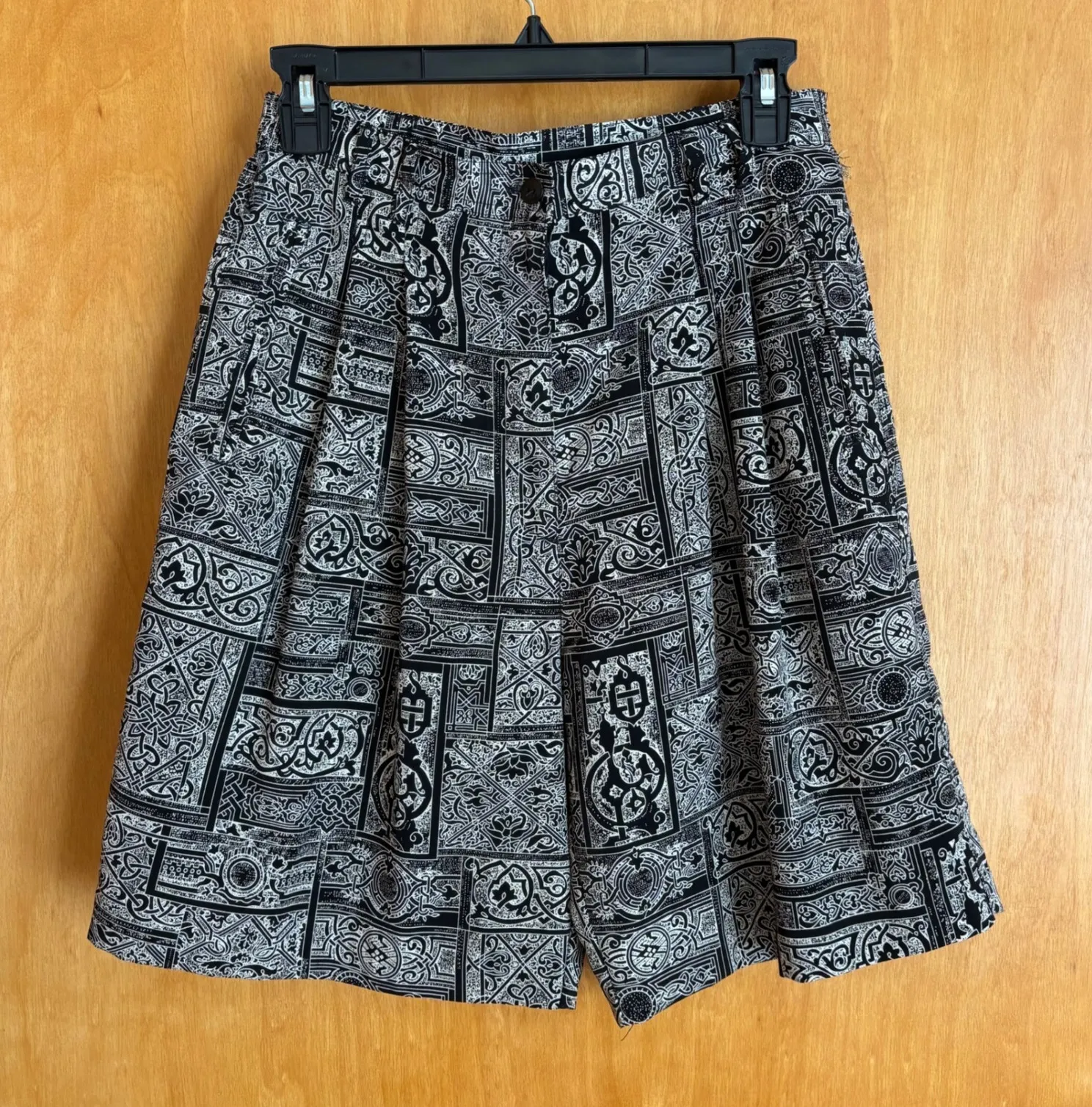 Vintage inspired shorts displaying an amazing mosaic of intricate black and white geometric patterns... Show more