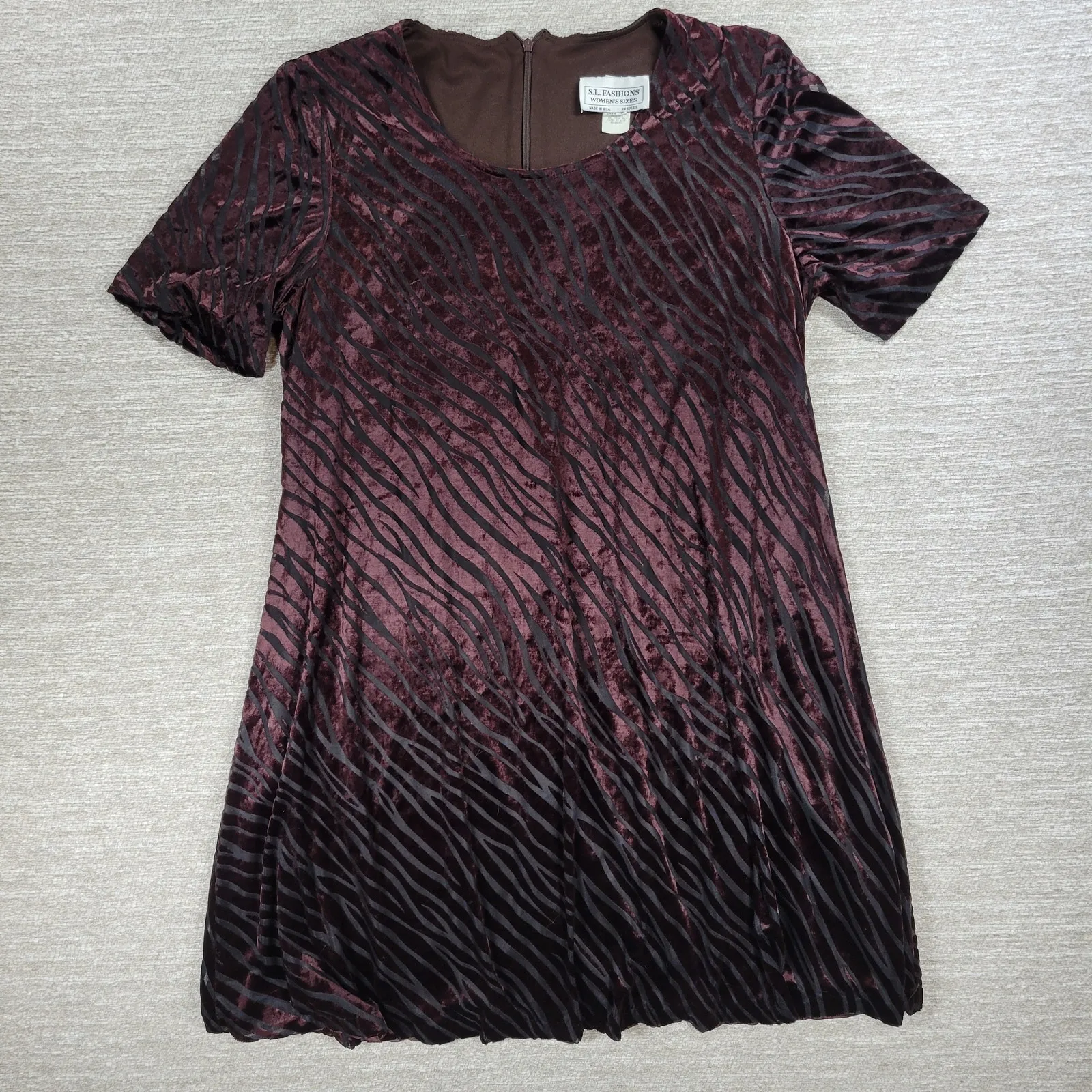 Vintage S.L. Fashions Burned Out Velvet Dress Womens Size 14 Brown Tiger Stripe Animal Print Swing F... Show more