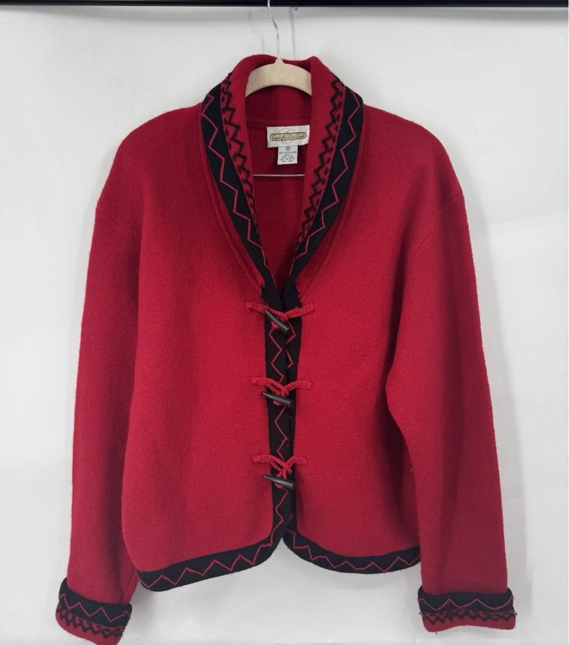 Great pre owned condition with mild wear. Has teeth button closure. Embroidered details. Size m All measurements are approximate: 21 inches pit to pit. 18 inch sleeve from cuff to pit. 25 inch length from shoulder to bottom hem.