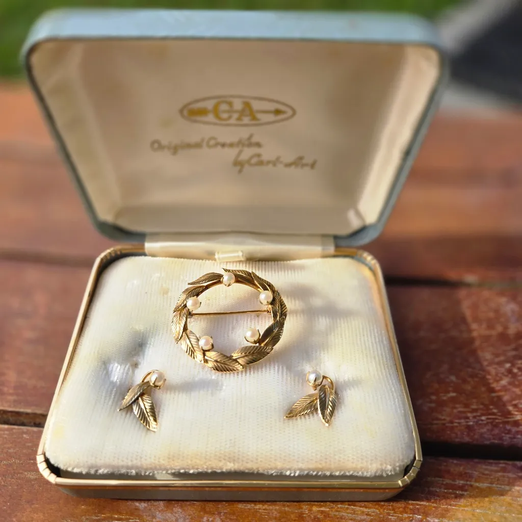 VTG CARL ART brooch & Screw earring set In Original Box 1/20th 12K GF Gold - $69 - From Christine