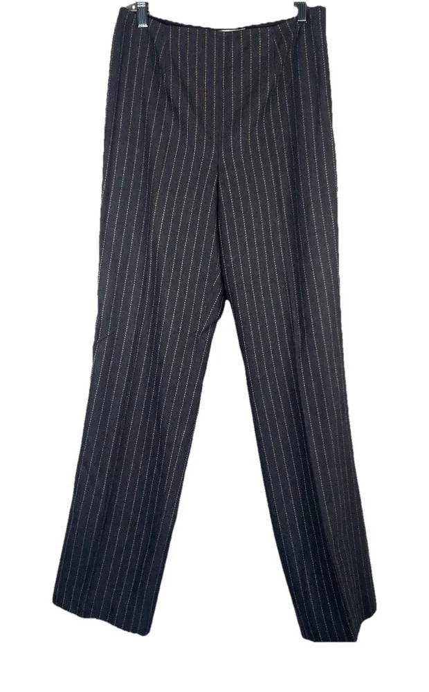 —Vintage sizing—check measurements— Elevate your wardrobe with these vintage Carlisle dress pants. Made from a luxurious blend of Lycra and wool, these classic-fit trousers feature a flat front and straight leg style. The gray-brown pinstripe pattern adds a touch of retro charm, while the high waist and 32-inch inseam provide a flattering silhouette. These pants are perfect for any occasion, from business meetings to casual outings. The hook and eye, button, and zip closure ensure a secure fit, while the accents of buttons and zippers add a touch of sophistication. Lined for added comfort, these pants are a must-have for any fashion-forward woman.