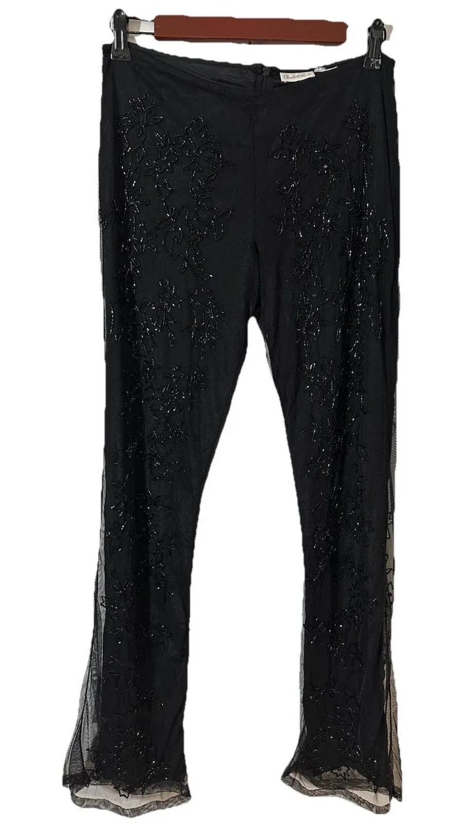 Charlotte Russe Black Sheer Mesh Beaded Floral Pants Vintage YTK Evening Party Sz S Missing size tag... Show more