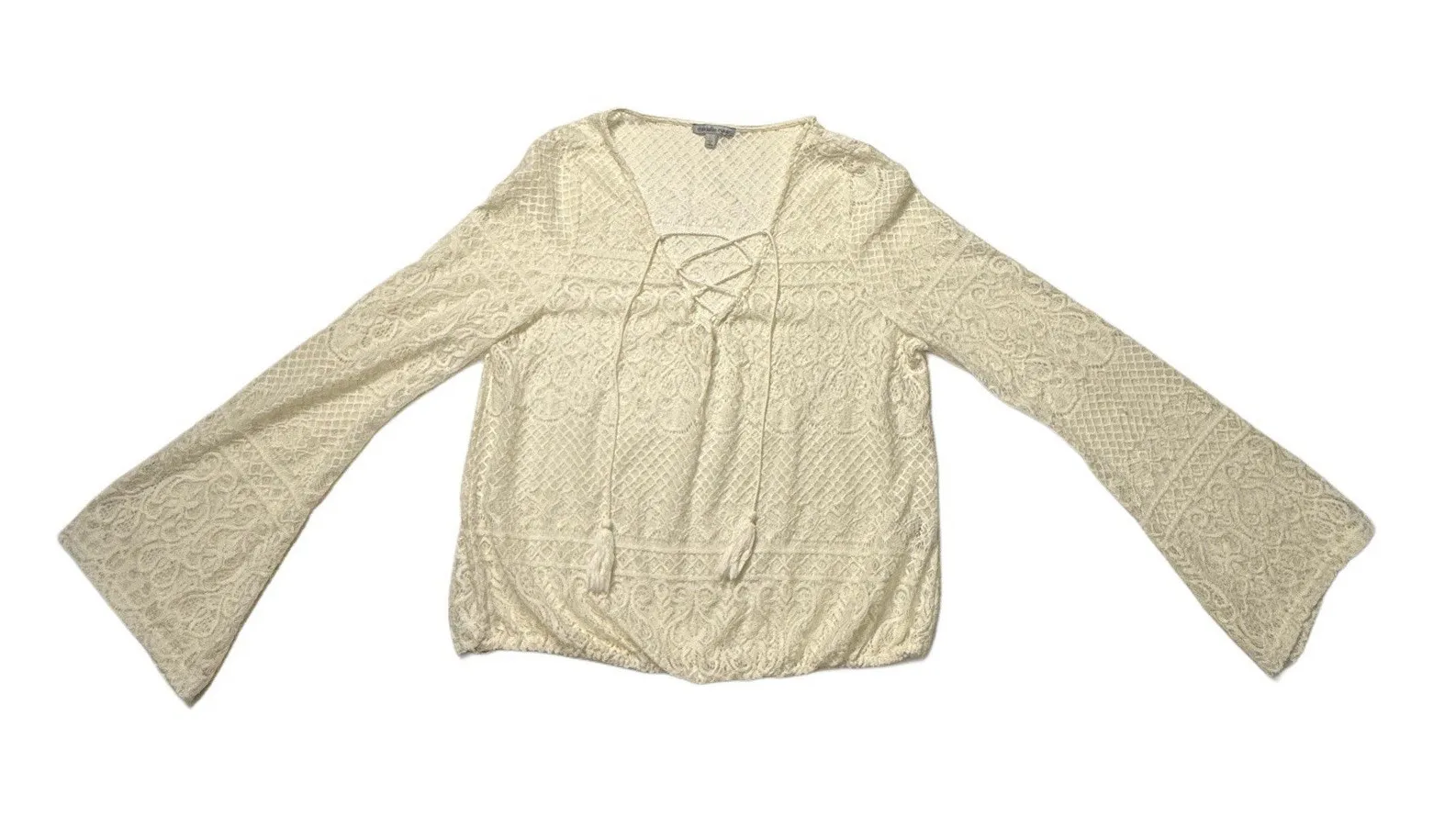 VTG Charlotte Russe Crotchet Prairie Blouse/Bell Sleeve, corset tie front, long sleeve, sheer Y2K,... Show more