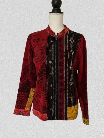 Vtg Chico's Jacket Full Zip Long Sleeve Cotton/Rayon Embroidery Trim, Sz 1 100% Cotton, Embroidery:... Show more