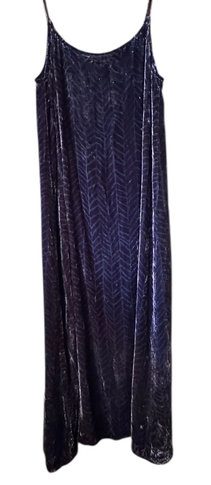 Capture effortless elegance with this David Dart velvet maxi slip dress. The rich plum hue is enhanced by a subtle yet striking chevron pattern woven into the luxurious velvet fabric, creating a captivating visual texture that catches the light with every movement. Delicate spaghetti straps offer a refined silhouette, perfect for making a sophisticated statement. This dress is ideal for a romantic evening out or a chic cocktail party. Measurements: • Bust: 17 in • Length: 54 in Keywords: velvet dress, slip dress, chevron print, spaghetti strap dress, evening gown, cocktail dress, plum dress, elegant, sophisticated, formal dress, special occasion, night out, party dress Thanks for looking!!