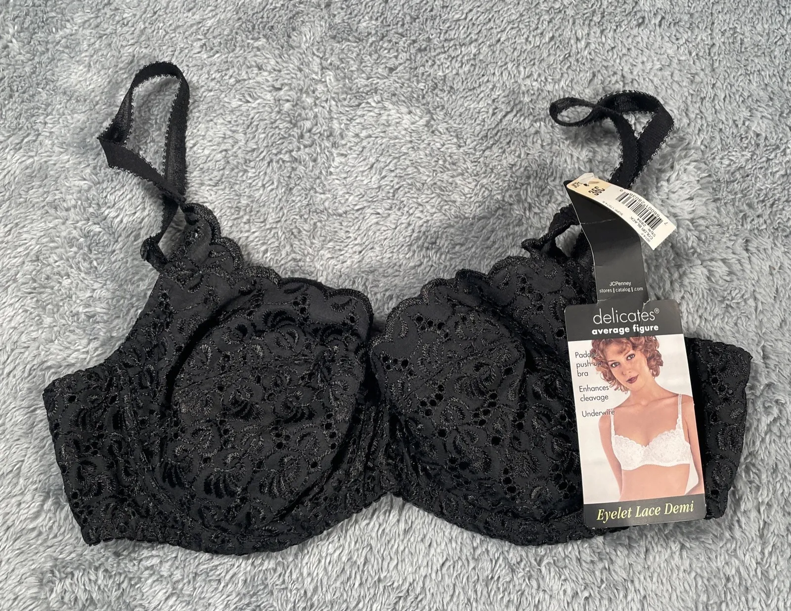 VTG Delicates The Amazing Average Figure Underwire Bra Size 36C 2894 Lace Demi Black - $25 New With Tags - From Molly