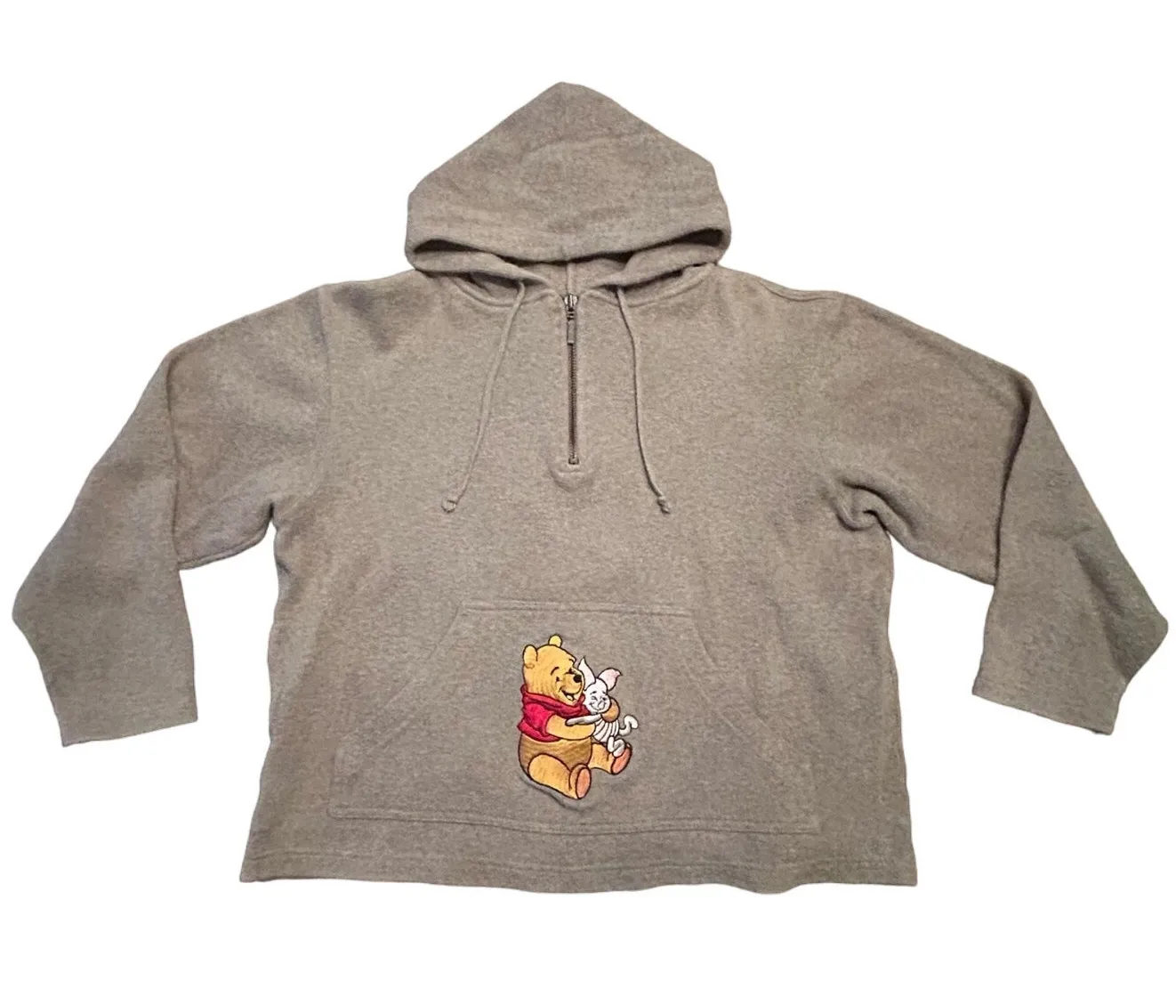 • Features: Half-zip neckline, drawstring hood, front kangaroo pocket, embroidered Pooh & Piglet graphic