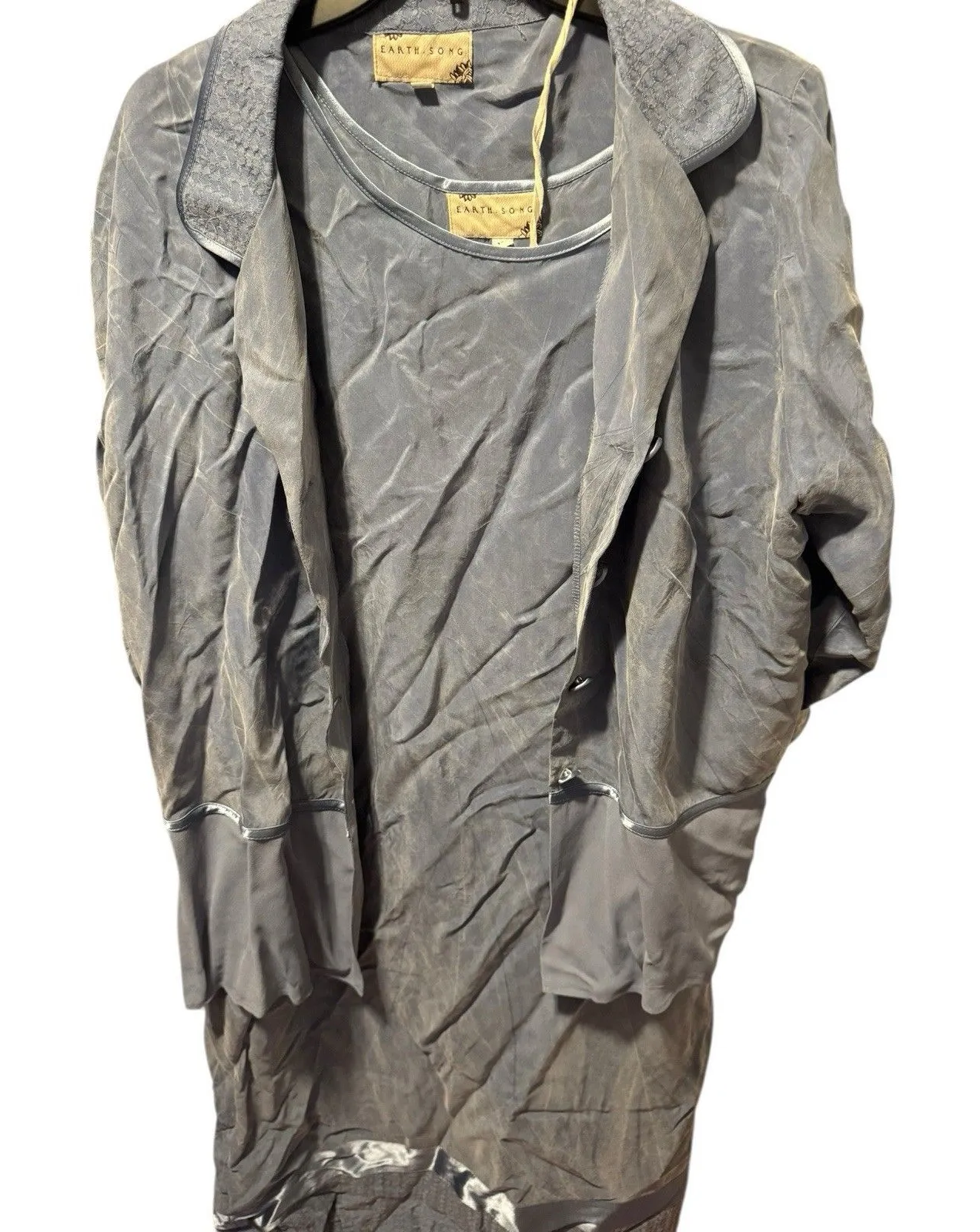 Vtg Earth Song Blueish Gray Dress Set Womens 14 Silky Bemberg Smock Dress And Button Jacket long sle... Show more