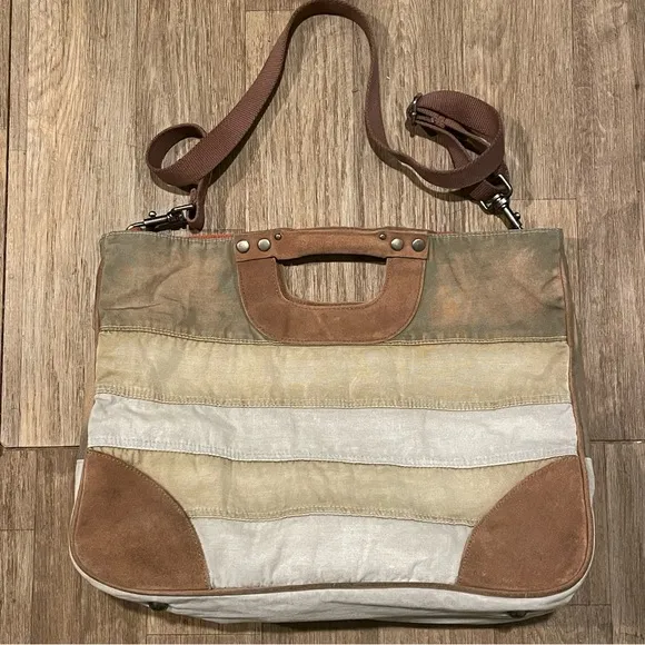 Vintage Free People Weathered Crossbody Tote Shell and lining 100% cotton Handles and trim 100% leat... Show more